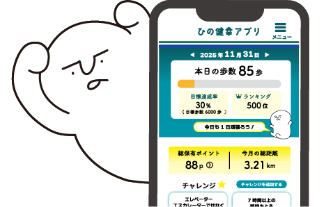 ひの健幸アプリ(愛称:ひのけん)は、日々の健康づくりの活動